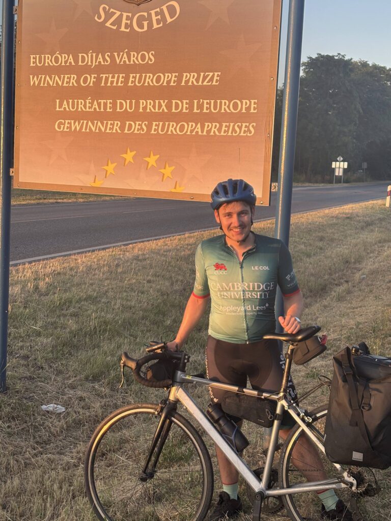 Ever since arriving at St John’s, I had the idea at the back of my mind of cycling to Hungary. As my penultimate year started and my final year quickly approached, I realised that the opportunity might escape me if I didn’t act soon. Therefore, instead of taking my usual flight home over the summer, I decided to traverse the continent on two wheels before starting my medical elective in Hungary. The route had been obvious to me ever since I first saw a ‘Welcome to Cambridge’ sign declaring that Cambridge is twinned with Heidelberg in Germany and my hometown, Szeged in Hungary. I therefore planned to cycle from Cambridge through Heidelberg to Szeged to visit both twinned cities in one go.