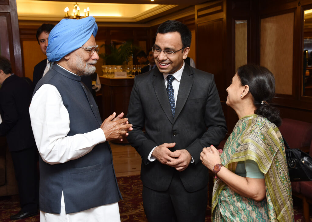 Among the gossip, laughter, clinking glasses and big personalities showing off, I noticed a slight man standing alone away from the crowd, with a white beard and blue turban wearing a relaxed white kurta outfit. I recognised him as Manmohan Singh, the former Finance Minister who had initiated India’s financial reforms in the early to mid 90s – he was now part of the opposition, following elections in 1996.