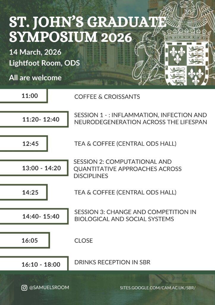 🕡 Time: 11am Refreshments in Central Hall; 11.20am–4pm Presentations; 4–6pm Drinks Reception in the SBR (postgraduate common room)