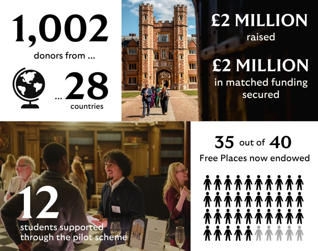 The fundraising targets are ambitious, due to the nature of endowment, but the reward is without measure: a new era of sustainable, world-class, means-tested support, which we hope will spread beyond St John’s to Cambridge and to the wider UK Higher Education landscape.
